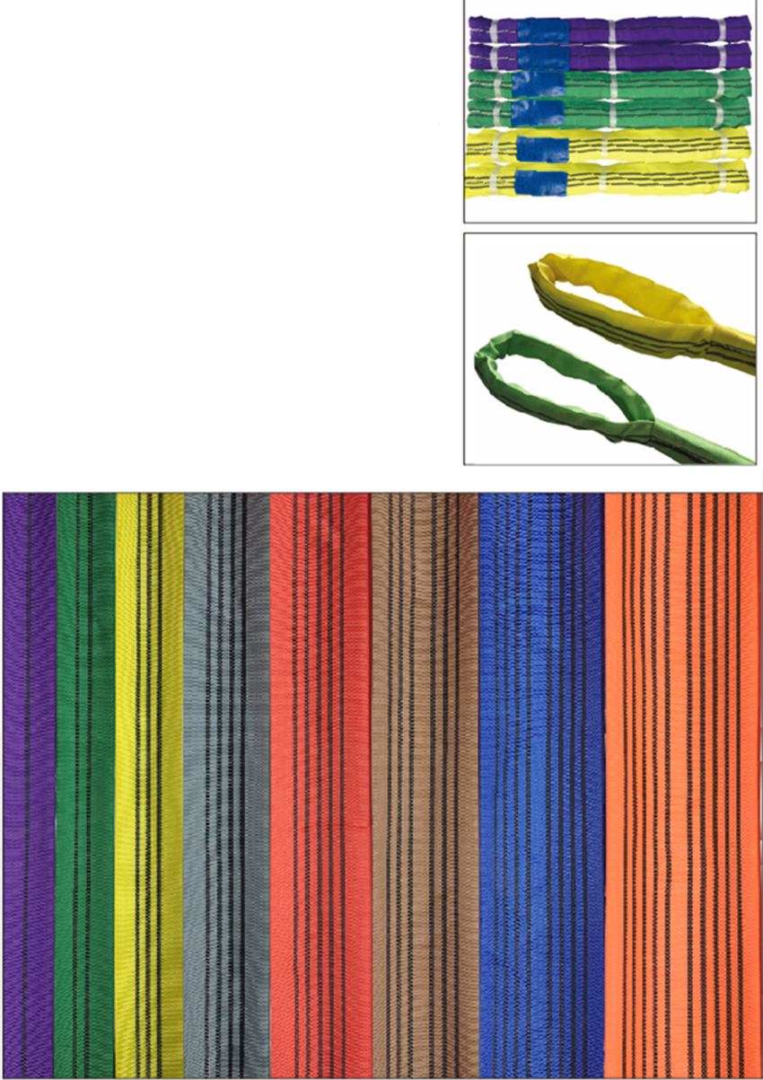 Les éjeingues rondes sont fabriquées selon la norme EN 1492-2 et ont un facteur de sécurité de 7 : 1. Les fibres porteuses sont enroulées ensemble pour former un écheveau sans fin. La limite de charge de travail est déterminée par le nombre de tours de l'écheveau.