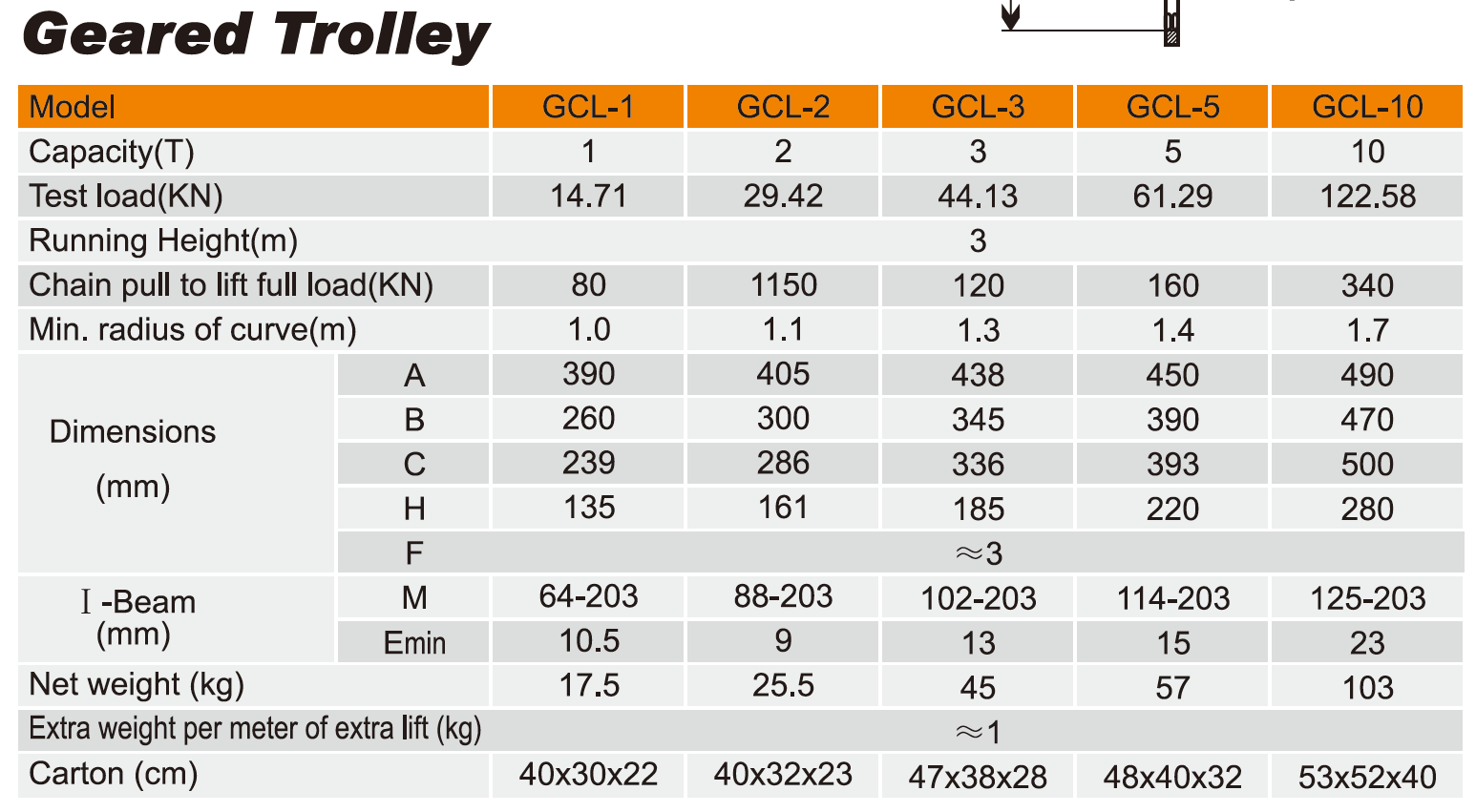 l Pour les chariots à engrenages, la longueur utile standard est de 3 m, d'autres longueurs sont disponibles sur demande